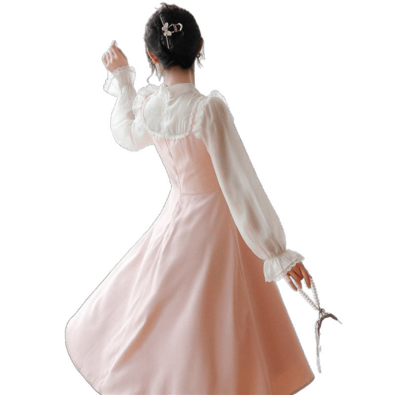 袖口のフリルディテールが繊細な雰囲気を演出し、ウエスト切替で着痩せ効果も抜群です。