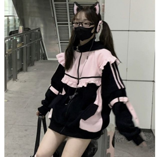 地雷系ファッションの定番アイテムであるジャージをキュートにアレンジした一着です。