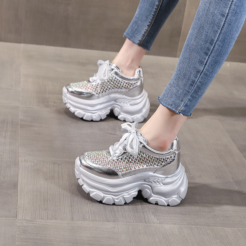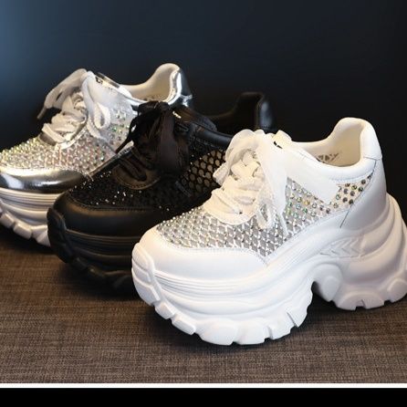 アッパー全体に散りばめられたきらめく装飾が、歩くたびに華やかな輝きを放ちます。