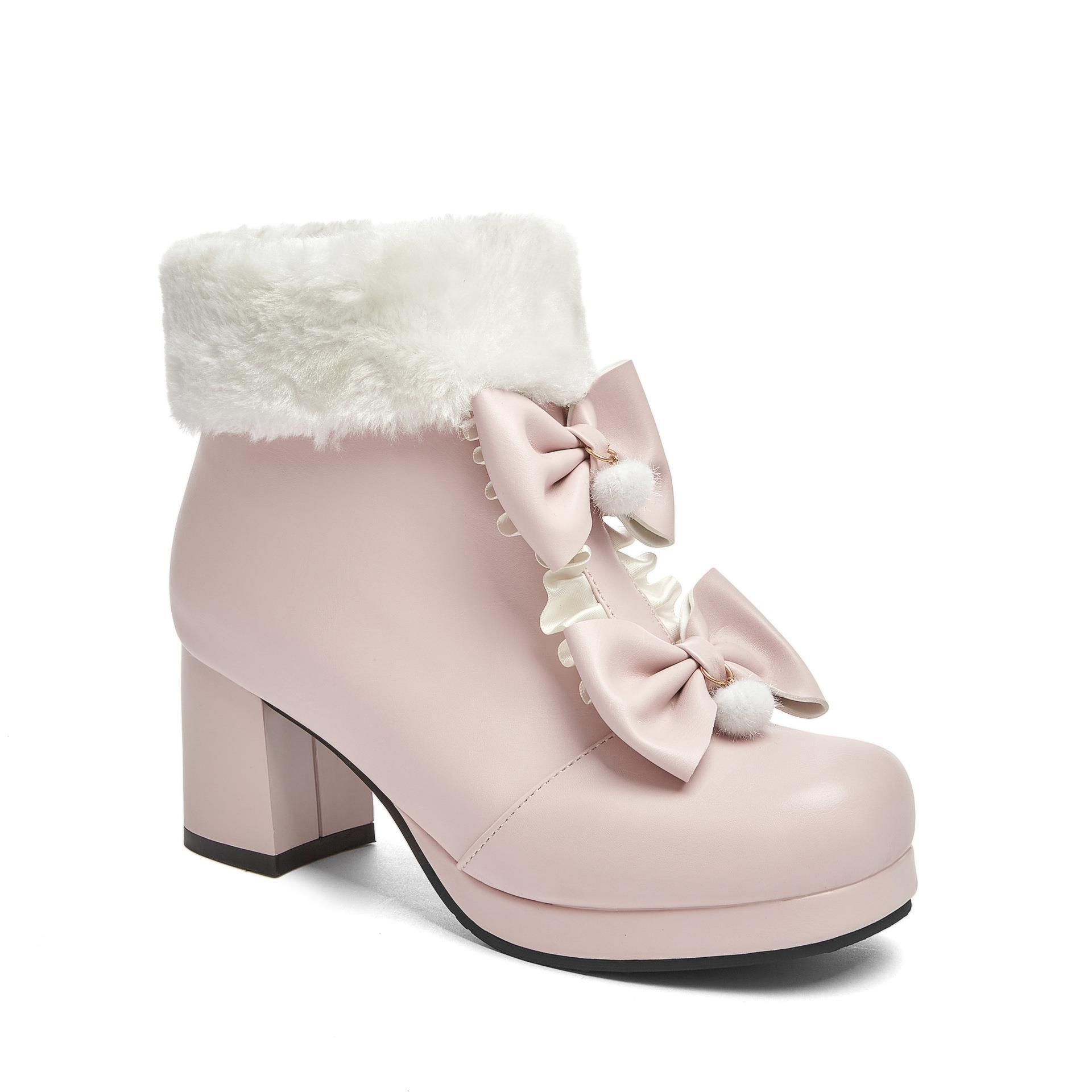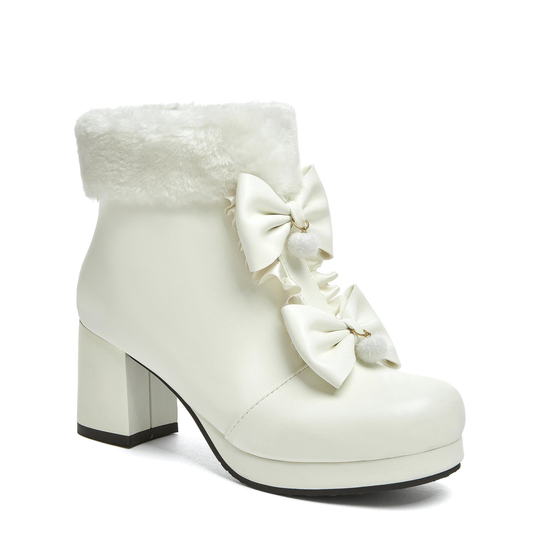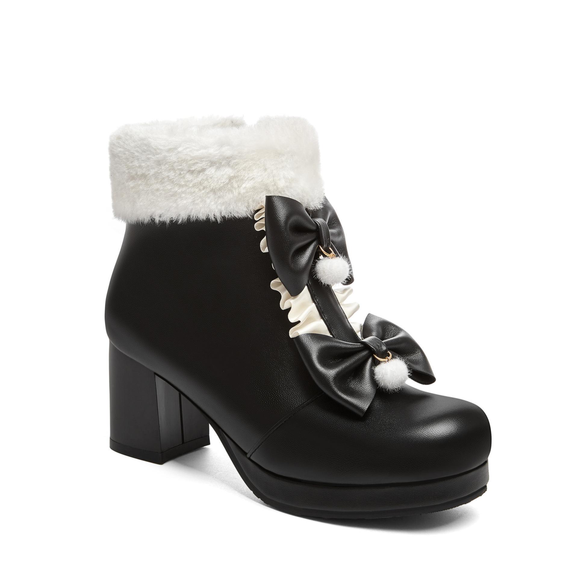 履き口のもこもこファーと大きなリボンモチーフがガーリーな雰囲気を演出します。