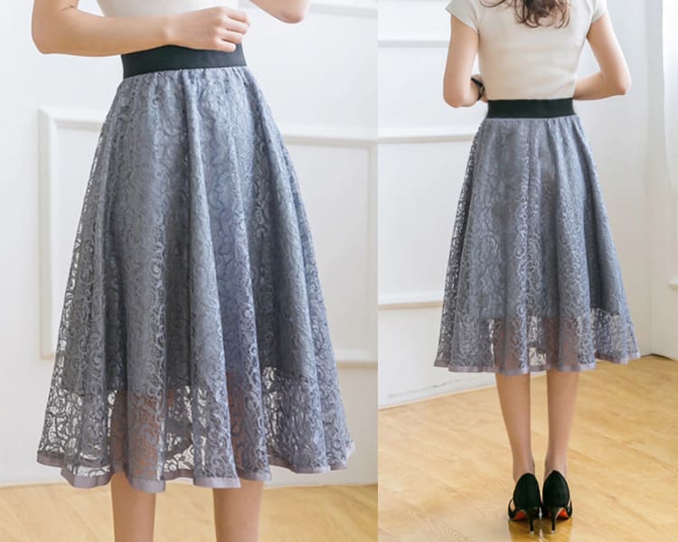 レースがかわいいミドル丈ハイウエストの地雷系スカートです! 大人っぽい雰囲気の地雷系コーデにおすすめ!